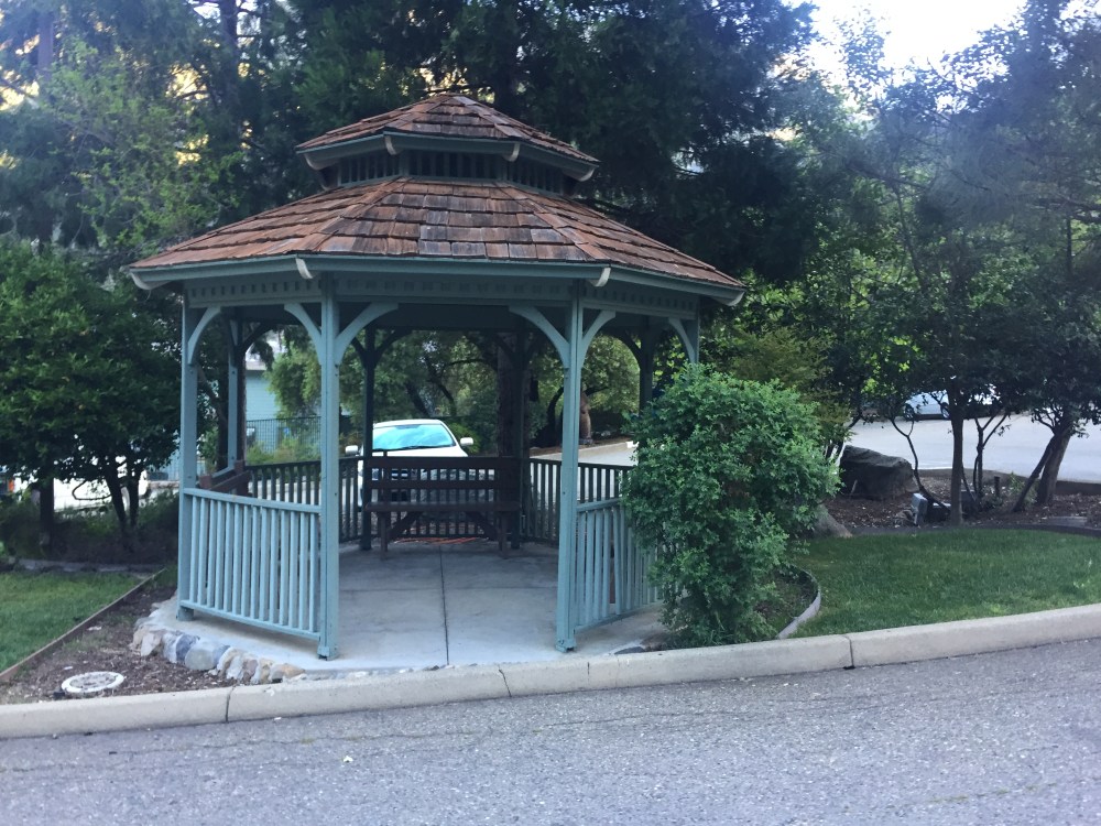 The drive in was beautiful, of course. Cool and breezy with the magnificent Merced “rushing” out to meet us! 🙂  We’d never entered from El Portal before and we saw there had been a rock fall that blocked the road. It obviously happened quite a long time ago (Anyone reading this know when?) as they had built a detour bridge with a well-oiled system for crossing. The bridge and a long section is one-way, so you have to wait for the signal to tell you when to go and wait for the oncoming traffic. The wait is about 5-7 minutes or so, but who cares when you can enjoy the scenery! 0102 We arrived around 5:00 PM, quickly checked in and changed clothes, then drove into the Valley. I’d hoped to get a Passport Stamp at the Visitor’s Center but it was already closed, then we tried to head over to the Lower Yosemite Fall trail, but the road was closed and there wasn’t enough time to walk before it got dark. No worries, as we headed over to Swinging Bridge. We’d never stopped there before, and were thrilled to see deer checking out the recently vacated picnic areas, and also got some great view of Yosemite Falls and Half Dome just before Sunset. The deer were pretty interested in licking the barbeque pits (keep that in mind the next time you use one for cooking!), and we got some fun pics with them. Yosemite Deer Swinging Bridge