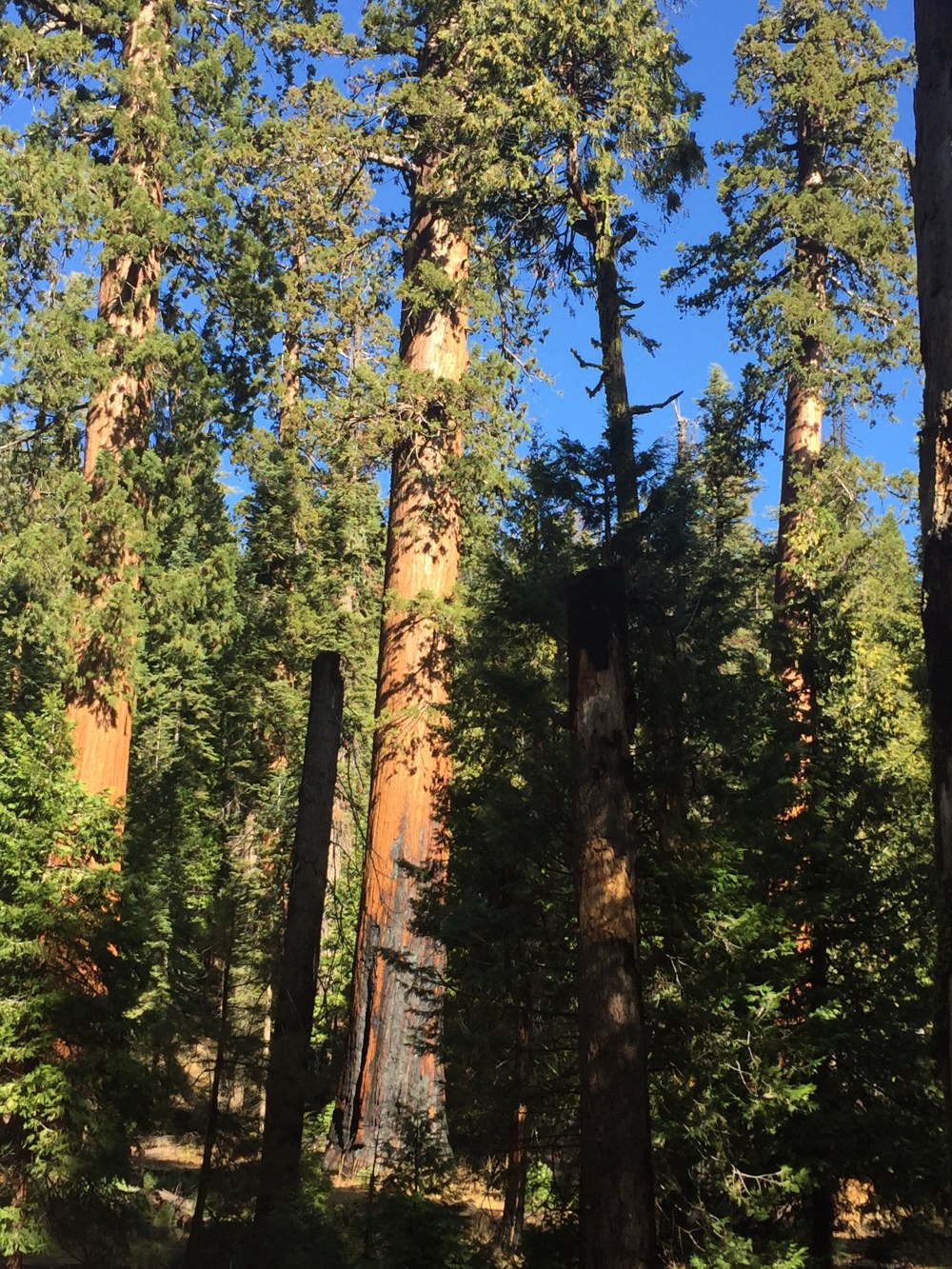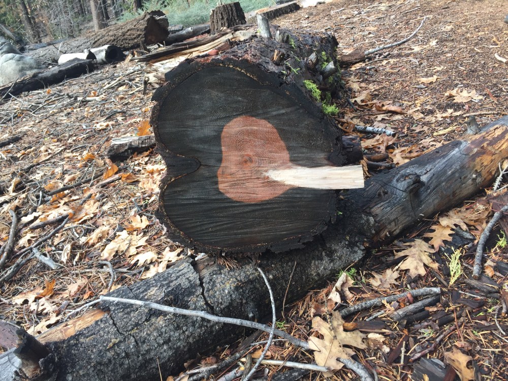 The Giant Sequoias don’t burn down during fires – they actually require heat from fires to regenerate – but they do get scarred as you can see in the picture below. The bark from a Sequoia can be as thick as 2 feet at the base! You can learn more about fires and the Sequoias by watching this short video here. Really fascinating.