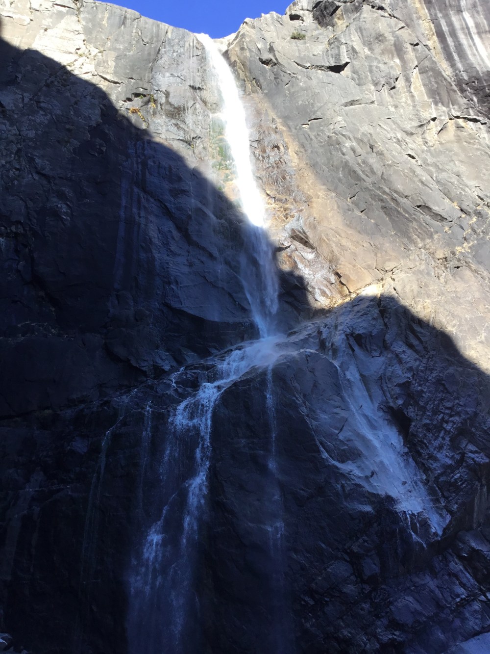 Bridalveil Fall was still pretty full – in fact all of the Falls in the area were flowing when we arrived except Yosemite Falls, which is the first to dry up. The trail is short and fairly easy to walk. It was strange being up there near the base with no other tourists! There were a few people on the trail, but no one else at the base where it’s usually crowded, nice to take pics. The river along the trail was still pretty full and there were lots of great photo ops.