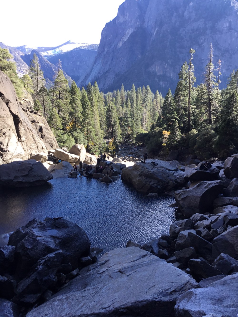 On Friday we walked to the shuttle stop, very close to Upper Pines at stop 16. You can find valley shuttle info here. If you’ve never been to the valley off-season, know that some of the shuttle stops/buses are not available like they are during peak season, but they keep the website updated, and you can always get more info upon arrival.