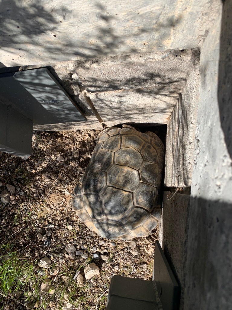 At the visitor’s center you can visit the tortoise habitat outside. From November to March they are typically in a type of hibernation called brumation, but we were fortunate enough to see one of the desert tortoises out of his burrow.