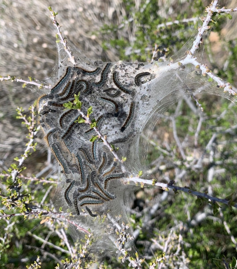 There were lots of these silk-like cocoons in the bushes. I did a little research and found out they are Western Tent Caterpillars, and they spin this web around themselves from their mouths. I had a video of this but lost it (waaaaaa!). They were really fascinating!